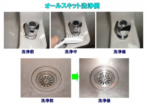 シンク、浴槽、鏡、トイレ、陶器等の一般洗浄(アルカリ洗剤)では落ちない水周りの汚れを塗置きする事でスキット落とします。